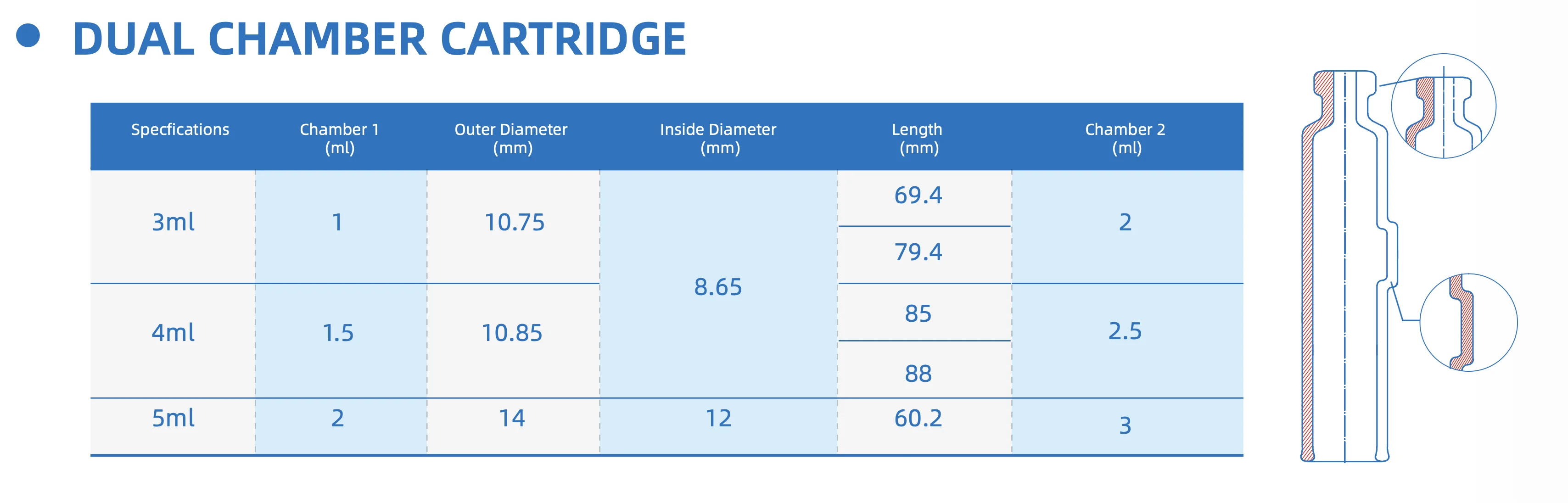 ◆ 5ml, 1.8ml, 3ml Cartridge